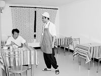 在龙跃苑论坛,记者看到黄先生两星期来每天开出的菜谱,通常是两荤两素,花样不断翻新。昨晚8点30分,记者在黄先生家中看到,他正在厨房为一名晚上9点才能过来的业主准备晚饭,“客人刚打过电话来预约,我就提前半小时开始准备,让他进屋就能吃上热饭热菜。”黄先生说。他的家是一套两居室,客厅里摆出5张干净整洁的小饭桌。晚上9时,这名业主准时来到,黄先生笑眯眯地给他端上了可口的饭菜。